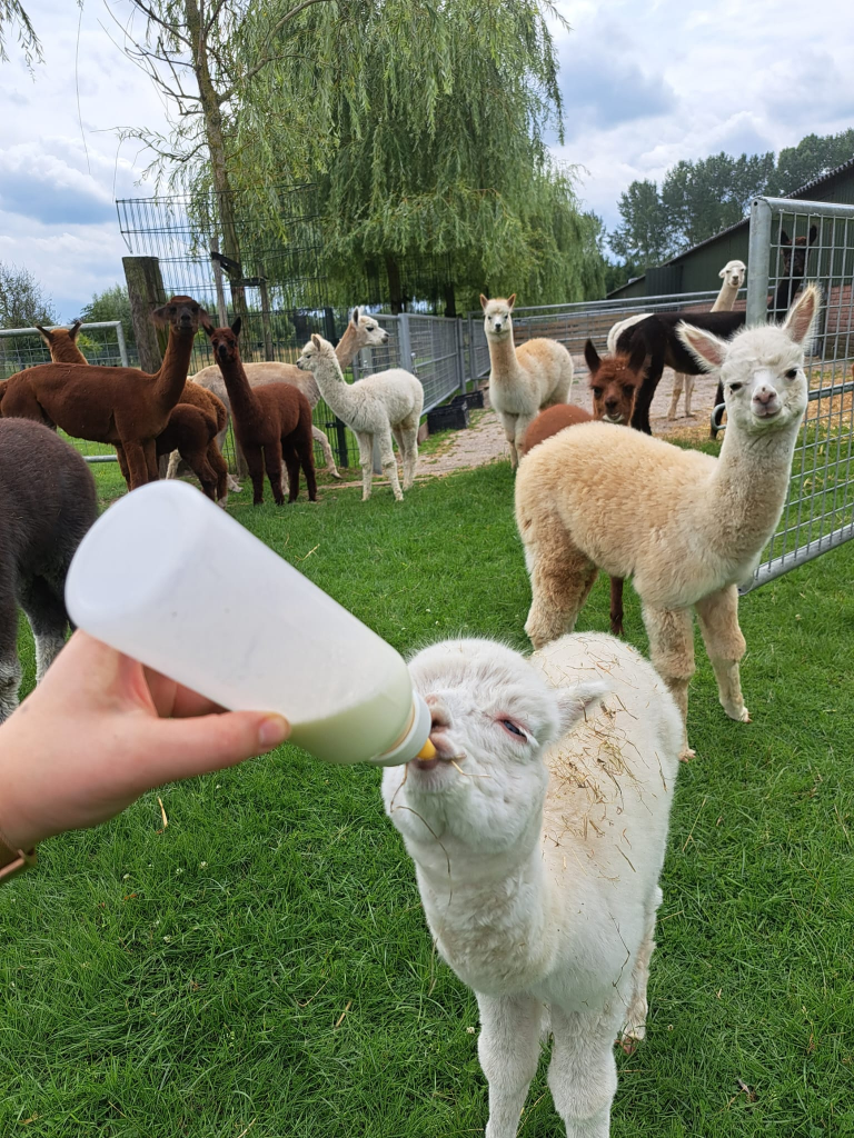 Mocht u nadenken over de aanschaf van alpaca’s en u heeft daarnaast ook nog andere dieren in de wei? Die gaan over het algemeen prima samen. Zo lopen de geiten en alpaca’s bij ons ook in dezelfde wei. Let hierbij wel op voor wormbesmettingen en dat ze aparte voederbakken hebben. Door de dagelijks verzorging worden ze aanhankelijk en zijn de alpaca’s geschikt voor zowel de fokkerij als de hobbyist.
